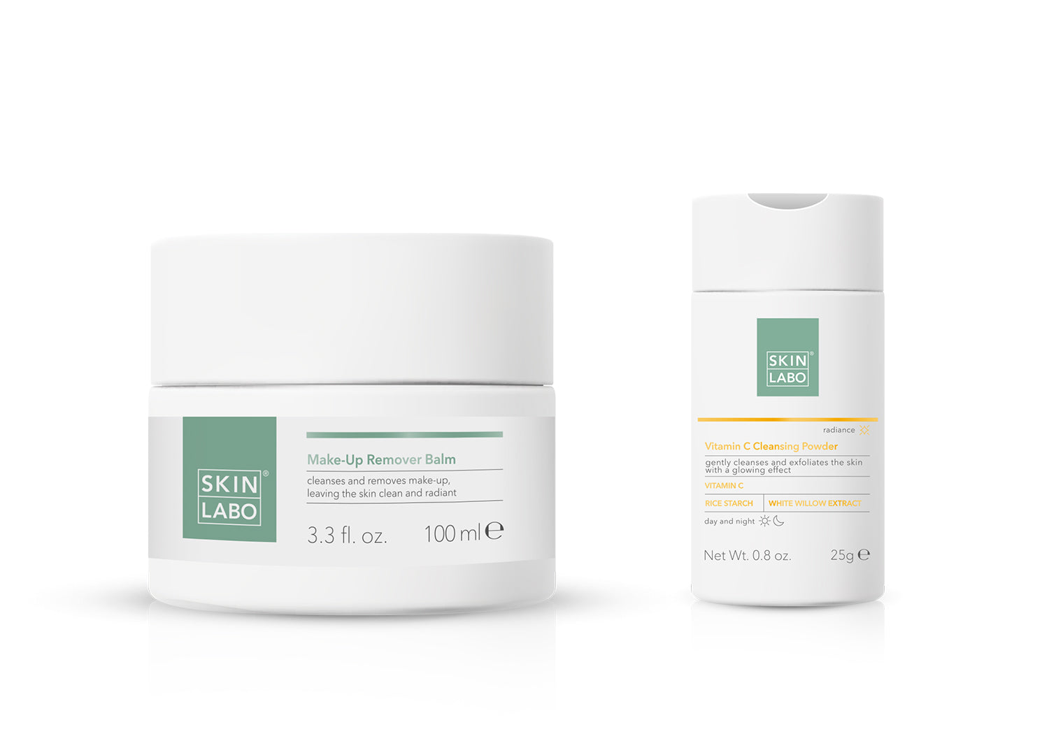 Dacă ați aplicat machiaj, demachiați-vă fața cu Untul de curățare (1) și completați curățarea cu Praful de curățare cu vitamina C (2) turnând o cantitate mică de produs în palma mâinii și amestecând cu puțină apă.